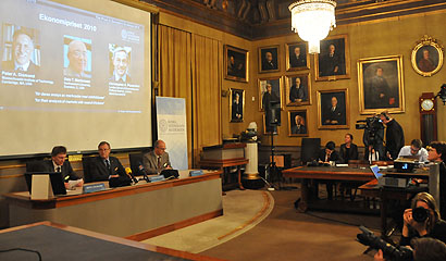 | 2010年10月11日,瑞典皇家科學(xué)院宣布,美國經(jīng)濟(jì)學(xué)家彼得·戴蒙德和戴爾·莫頓森,以及具有英國和塞浦路斯雙重國籍的經(jīng)濟(jì)學(xué)家克里斯托弗·皮薩里德斯將分享2010年諾貝爾經(jīng)濟(jì)學(xué)獎(jiǎng)。瑞典皇家科學(xué)院當(dāng)天說,這三名經(jīng)濟(jì)學(xué)家憑借對(duì)“經(jīng)濟(jì)政策如何影響失業(yè)率”理論的進(jìn)一步分析,摘得2010年諾貝爾經(jīng)濟(jì)學(xué)獎(jiǎng)桂冠。三人的理論可以解釋許多經(jīng)濟(jì)現(xiàn)象,包括“為何存在很多職位空缺的時(shí)候,仍有眾多人失業(yè)”。三人建立的經(jīng)濟(jì)模型還有助于人們理解“規(guī)章制度和經(jīng)濟(jì)政策如何影響失業(yè)率、職位空缺和工資”。新華社記者
