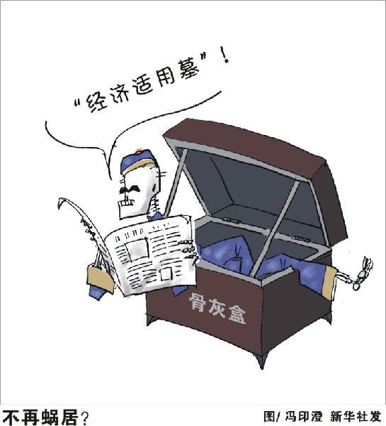 近年來(lái),全國(guó)各地不斷曝出“天價(jià)墓”“豪華墓”,一些墓地動(dòng)輒幾十萬(wàn)元,有的甚至上百萬(wàn)元,比不斷上漲的房?jī)r(jià)還高,被輿論批為“黃泉路上收費(fèi)高”。最近,浙江省寧波市北侖區(qū)推出的“經(jīng)濟(jì)適用墓”,再次掀起有關(guān)殯葬改革的輿論交鋒:墓價(jià)高于房?jī)r(jià),“經(jīng)濟(jì)適用墓”能否破解“黃泉路上收費(fèi)高”的尷尬,減輕群眾的殯葬負(fù)擔(dān)?這種改革是否適合我國(guó)人多地少的國(guó)情,符合殯葬改革的方向?相關(guān)人士認(rèn)為,傳統(tǒng)觀(guān)念在短期內(nèi)很難改變,應(yīng)當(dāng)正視群眾“入土為安”的殯葬需求,允許作為權(quán)宜之計(jì)的“經(jīng)濟(jì)適用墓”嘗試和探索。但更為長(zhǎng)遠(yuǎn)的,應(yīng)當(dāng)理順殯葬管理體制,加快殯葬管理立法進(jìn)度,積極推行政事分開(kāi)、管辦分離,通過(guò)政府限價(jià)等干預(yù)措施,讓墓價(jià)整體“經(jīng)濟(jì)適用”。新華社發(fā)
