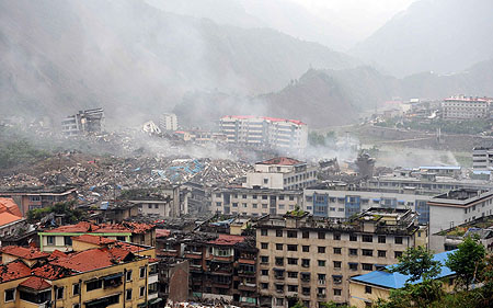 為重建災(zāi)區(qū),我國(guó)通常采取財(cái)政緊急撥款、社會(huì)募捐等方式來(lái)籌集資金,而保險(xiǎn)賠付卻十分匱乏。 圖為汶川地震后的北川。資料照片 |