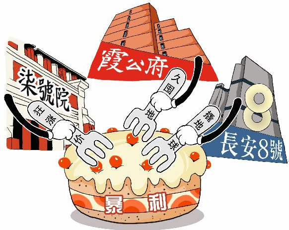 隨著房地產(chǎn)調(diào)控新政對市場影響逐漸加重,樓市成交量銳減,高端樓盤卻在冷清的市場中格外搶眼。5月以來,北京豪宅逆勢而動,釣魚臺7號院狂漲至30萬元/平方米,從北京最貴躥至全國最貴,曝出最嚴(yán)限購令下的樓市暴利,6月3日該項目已被暫停銷售。京城另外兩大在售豪宅霞公府和長安8號,盡管價格未現(xiàn)漲勢,卻也在以不同的手段攫取著暴利?駶q價、久囤地、撬地球--最經(jīng)典的樓市三大暴利法則,在京城三大豪宅項目中演繹得淋漓盡致。 新華社發(fā)