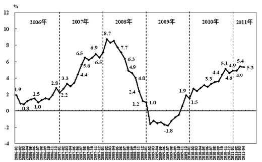 圖2 居民消費價格月同比上漲率(2006年1月—2011年4月)