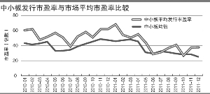 圖四:中小板發(fā)行市盈率與市場(chǎng)平均市盈率比較