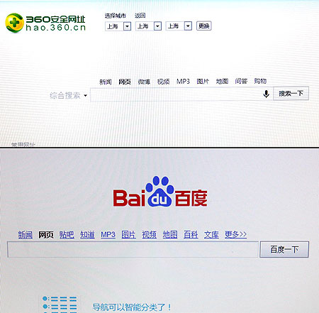 不久前,互聯(lián)網(wǎng)搜索巨頭百度和奇虎360爆發(fā)大戰(zhàn),互相反制對方產(chǎn)品和應用。這場大戰(zhàn)源于奇虎360公司在8月16日上線360綜合搜索,這家此前以殺毒軟件為拳頭產(chǎn)品的互聯(lián)網(wǎng)公司跨界進入百度長期占據(jù)壟斷地位的網(wǎng)絡搜索市場。讓百度寢食難安的是,有關數(shù)據(jù)顯示,360綜合搜索僅僅上線幾天后,就超越搜狗、搜搜和Google,成為僅次于百度的中國第二大搜索引擎。資料圖片 |