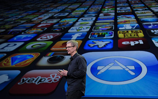 3月7日,蘋果CEO蒂姆·庫克在舊金山的蘋果產(chǎn)品的發(fā)布會(huì)上展示App