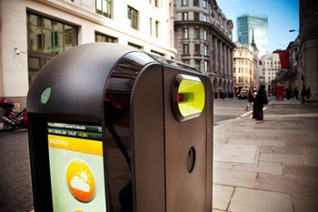 圖為倫敦奧運(yùn)會(huì)期間,英國一家科技公司在倫敦街頭安放的智能垃圾箱! 資料照片 |