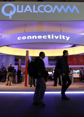 圖為今年2月在巴塞羅那舉行的世界移動通信大會上的高通展區(qū)!