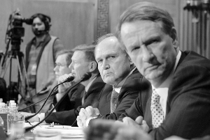 | 美國參議院舉行聽證會(huì)調(diào)查美國汽車業(yè)狀況。新華社/路透 | 美國汽車業(yè)三巨頭通用、福特、克萊斯勒18日強(qiáng)烈要求美國政府提供250億美元救助資金,并警告稱倘若不能獲得政府注資,三巨頭均面臨破產(chǎn)風(fēng)險(xiǎn),并將給美國經(jīng)濟(jì)帶來災(zāi)難性后果。盡管美國會(huì)民主黨議員主張從7000億美元中撥部分款項(xiàng)救助汽車業(yè),但在參議院通過該方案需要60票贊成票,而民主黨只占有50個(gè)議席,因此方案恐難獲得通過。分析師認(rèn)為,盡管該提案可能暫時(shí)穩(wěn)住市場(chǎng),避免上演雷曼兄弟倒閉后股市暴跌的一幕,但很難成為市場(chǎng)動(dòng)蕩的終結(jié)者。