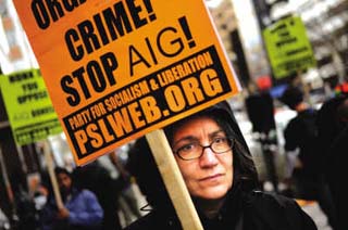 IC圖 | 當(dāng)?shù)貢r(shí)間3月21日,美國(guó)康涅狄格州總檢察長(zhǎng)布盧門撒爾表示,經(jīng)營(yíng)陷入困境的美國(guó)國(guó)際集團(tuán)(AIG)最近分發(fā)的獎(jiǎng)金實(shí)際不止此前聲稱的1.65億美元,而是2.18億美元。 與此同時(shí),美國(guó)各地民眾抗議AIG的風(fēng)潮迭起。圖為洛杉磯的抗議者舉著“該死的AIG”標(biāo)牌游行。AIG發(fā)放巨額獎(jiǎng)金引發(fā)美國(guó)民眾強(qiáng)烈不滿。 根據(jù)最新資料,有73名美國(guó)國(guó)際集團(tuán)的高級(jí)員工每人拿到的獎(jiǎng)金超過100萬美元,其中5人的獎(jiǎng)金更是超過400萬美元。據(jù)報(bào)道,布盧門撒爾已要求該公司就此作出解釋。 布盧門撒爾說,最新的獎(jiǎng)金數(shù)據(jù)將使民眾對(duì)美國(guó)國(guó)際集團(tuán)行為更加憤怒,因?yàn)樗麄冋J(rèn)為這些員工不僅不應(yīng)該得到獎(jiǎng)金,而應(yīng)該被掃地出門。 美國(guó)國(guó)際集團(tuán)是美國(guó)金融危機(jī)的始作俑者之一,為避免該公司破產(chǎn)從而加劇金融危機(jī),美國(guó)政府先后向該公司提供了1700億美元的救助資金,并控制了美國(guó)國(guó)際集團(tuán)80%的股權(quán)。但該公司不久前以“履行合約”為由,宣布向員工支付了1.65億美元的高額獎(jiǎng)金,招致美國(guó)上下的強(qiáng)烈批評(píng)。