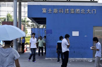 員工出入富士康科技集團(tuán)深圳龍華科技園北門。本報(bào)記者 陳曄華 攝 |
