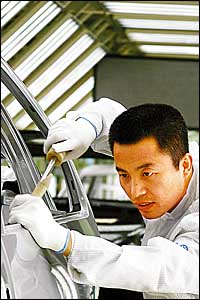 汽車博覽會(huì)歷來(lái)是各大汽車生產(chǎn)企業(yè)角逐的舞臺(tái),它不僅展示企業(yè)產(chǎn)品,擴(kuò)大品牌影響,而且是企業(yè)綜合實(shí)力的較量。多年來(lái),一汽大眾的展車都是花大筆錢聘請(qǐng)德國(guó)專家來(lái)做,而且每次都不讓中方員工參與,理由是怕影響展車質(zhì)量。 “外國(guó)人能做到的我們也能做到!北е@樣的信念,王洪軍悄悄地開(kāi)始揣摩探索。 一天下班,王洪軍走進(jìn)了展車制作現(xiàn)場(chǎng),看見(jiàn)德國(guó)專家焊的行李箱搭接縫沒(méi)焊完,他就試著焊了一段。第二天德國(guó)專家發(fā)現(xiàn)后,厲聲問(wèn)道:“這是誰(shuí)干的?”王洪軍的臉一下子紅了。德國(guó)專家拍拍他的肩膀說(shuō):“小伙子,我都干了23年了。干不了最好別亂動(dòng)! 那天晚上,王洪軍失眠了。他深知干展車的功夫不是一朝一夕能練成的,但他不能等23年啊。他再次鉚足了勁揣摩做展車的技術(shù)。 功夫不負(fù)有心人。經(jīng)過(guò)幾年的反復(fù)實(shí)踐和摸索,王洪軍掌握了壓痕、劃傷、波浪、坑包等“白車身”表面缺陷的處理絕技,總結(jié)出“手掌放平,著力點(diǎn)集中,勻速運(yùn)行,出手慢,回手快”的整修操作方法,創(chuàng)造出包括轎車“白車身”表面缺陷修復(fù)法、漆后鈑金缺陷修復(fù)和噴漆方法、車身間隙平度超差調(diào)整方法、展車制作方法等4個(gè)部分50多項(xiàng)100多種簡(jiǎn)捷適用的轎車鈑金快速修復(fù)法,并出版了《王洪軍轎車車身維修調(diào)整方法》。 2003年4月,王洪軍的創(chuàng)新成果經(jīng)一汽大眾中德質(zhì)保專家組嚴(yán)格評(píng)審鑒定,被正式命名為“王洪軍轎車鈑金快速修復(fù)法”。專家一致認(rèn)為,這一成果具有重大的理論突破,對(duì)車身表面修復(fù)有很高的應(yīng)用價(jià)值,整體研究成果居國(guó)際先進(jìn)水平。 從這年開(kāi)始,一汽大眾啟用了王洪軍的展車制作法,從此結(jié)束了聘請(qǐng)外國(guó)專家做展車的歷史。當(dāng)年,王洪軍只用兩周就出色地完成了德國(guó)專家要1個(gè)月才能完成的展車制作任務(wù)。近3年來(lái),王洪軍制作展車189臺(tái),為公司節(jié)約費(fèi)用700多萬(wàn)元。 王洪軍用他的智慧和汗水為一汽爭(zhēng)得了榮譽(yù),為祖國(guó)的汽車工業(yè)作出了杰出的貢獻(xiàn)。他先后榮獲吉林省和全國(guó)“五一”勞動(dòng)獎(jiǎng)?wù),被授予全?guó)機(jī)械行業(yè)“技能大師”、技術(shù)創(chuàng)新“十佳能手”等榮譽(yù)稱號(hào)。面對(duì)接踵而來(lái)的各種榮譽(yù),王洪軍說(shuō),榮譽(yù)屬于過(guò)去,創(chuàng)造和奉獻(xiàn)才是應(yīng)該永遠(yuǎn)追求的。 |