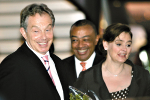 | 5月31日,布萊爾與夫人切麗一起抵達(dá)南非約翰內(nèi)斯堡的國際機(jī)場,他隨后向南非前總統(tǒng)曼德拉作離任前的最后告別。