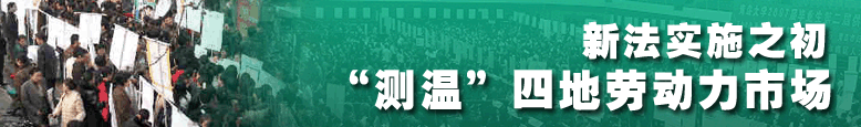 在勞動合同法“構(gòu)建勞資關系新格局”的起步階段,恰逢節(jié)后求職季節(jié)的來臨,人才招聘市場的熱度如何?廣大勞動者對新法給予就業(yè)“飯碗”的呵護,還有哪些期待? 3月2日上午,位于上海萬體館的綜合人才招聘會現(xiàn)場人頭攢動。記者從上海各大人才招聘市場獲悉,自春節(jié)后2月17日至2月底,上海各類招聘會已舉行了近百場,數(shù)量和規(guī)模為歷年來最多。據(jù)統(tǒng)計,在過去半個月內(nèi),招聘企業(yè)共推出10余萬個崗位,吸引了近30萬名求職者!啊鹑y四’明顯前移了!鄙虾P掳l(fā)現(xiàn)人才服務公司總經(jīng)理劉保存說。在人才市場上,每年的3月、4月往往是招聘高峰,被稱為“金三銀四”。有跡象表明,今年的招聘高峰比往年來得更早,大大小小的招聘會在2月份就已“扎堆”舉行。[詳情] | | |