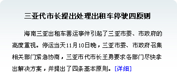 | 三亞出租車(chē)司機(jī)罷運(yùn)所要反映的問(wèn)題其實(shí)與重慶的問(wèn)題大體一致。而問(wèn)題的普遍存在,才是被有些人憂心忡忡的所謂“連鎖反應(yīng)”注定無(wú)法避免的真正原因,而并非是由“開(kāi)放、溫和的心態(tài)妥善地處理突發(fā)事件”導(dǎo)致的。[詳情] | |