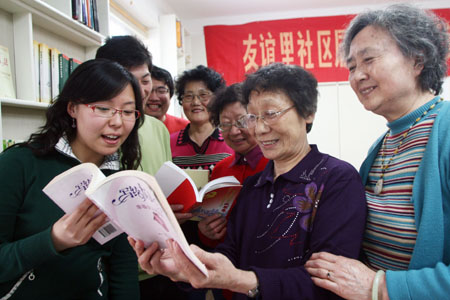 老人們在閱讀。新華社發(fā)(劉東岳攝) |