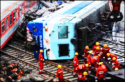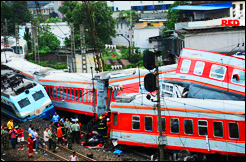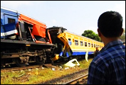 | 印度尼西亞楠榜省2008年08月16日發(fā)生兩列火車相撞事故。當地警方說,至少有8人在事故中遇難,另有26人受重傷、33人受輕傷。事故原因仍在調查中。印尼的鐵路交通相對落后且管理較差,火車相撞或火車與汽車相撞的事故經常發(fā)生。[詳細] | |