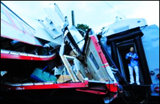 | 2008年09月14日,洛杉磯火車相撞事故現場的搜尋遇難者工作已經結束。12日下午4時30分左右,正值交通高峰期,一列搭乘了225名乘客的洛杉磯通勤客運列車行駛到距離市中心約40公里的卡茲沃斯時,在一個彎道處與一輛貨運列車猛烈相撞。[詳細] | |