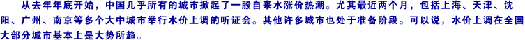 | 國(guó)家發(fā)改委在2006年提出的城市供水定價(jià)成本監(jiān)審辦法,對(duì)城市供水定價(jià)給出了基本的規(guī)范,即城市供水定價(jià)成本由合理的制水成本、輸配成本。[詳細(xì)] | |