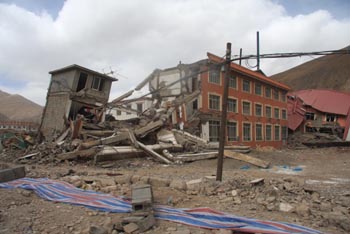青海玉樹地震災區(qū)現場。新華社記者 任曉剛 攝 |