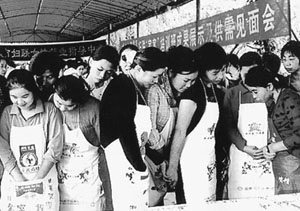 | 參加培訓(xùn)的戶改人員與用人單位供需見面會現(xiàn)場。本報記者 劉裕國