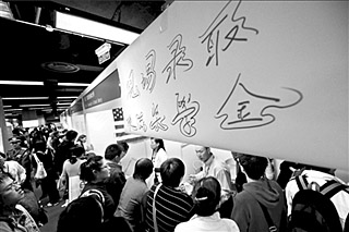 針對這種情況,組委會今天將加派40名保安,整個教育展的安保人員將達(dá)300人。另外,在展館外東西兩側(cè)都拉上警戒線,以規(guī)范等候入場的人流秩序。如果當(dāng)場館內(nèi)人數(shù)高達(dá)1.2萬人時,就要分時分段入場。