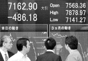 前一天暴跌9.6%的日本股市27日再遭重挫,股指大跌逾6%,收在26年來最低點(diǎn)。截至27日收盤,日經(jīng)225指數(shù)跌486.18點(diǎn),跌幅達(dá)6.4%,報(bào)7162.90點(diǎn),為1982年10月7日以來最低收盤價(jià)。上周五,該指數(shù)暴跌9.6%,至五年半低點(diǎn)。 個(gè)股中,大型銀行股成為下跌主力。上周末有報(bào)道稱,日本幾大銀行正在考慮采取戰(zhàn)略性舉措來補(bǔ)充資本金。這些措施可能會(huì)稀釋現(xiàn)有股權(quán),因而引發(fā)了更多拋售。 三菱日聯(lián)金融收盤狂瀉15%,至上市以來新低。瑞穗金融集團(tuán)跌15%,三井住友金融跌12%。在三大銀行大跌拖累下,東證指數(shù)銀行分類指數(shù)當(dāng)天收跌12.5%。 盡管日本經(jīng)濟(jì)增長(zhǎng)放緩,但日本的金融體系迄今為止并未受到金融危機(jī)最嚴(yán)重沖擊,該國(guó)的銀行業(yè)也并未爆發(fā)大型破產(chǎn)事件。但是,連續(xù)跳水的股市卻正在給日本的銀行帶來壓力,本月以來,日股市值已損失三分之一,可能成為有史以來損失最慘重的一個(gè)月。 日本媒體周末披露,股市暴跌不可避免地給金融機(jī)構(gòu)帶來了巨大投資損失,為此,三菱日聯(lián)、瑞穗金融和三井住友三大銀行正在尋求巨額融資。 報(bào)道稱,日本最大銀行三菱日聯(lián)可能需要融資1萬億日元(108億美元)以充實(shí)資本;而緊隨其后的瑞穗金融和三井住友則可能各自尋求融資5000億日元(54億美元)。