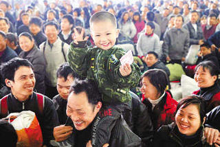 1月18日下午3時(shí)開(kāi)始,北京站和北京西站同時(shí)開(kāi)啟學(xué)生購(gòu)票專區(qū),持學(xué)生證的學(xué)生可在學(xué)生票窗口隨時(shí)購(gòu)買車票。當(dāng)天,記者從鐵道部獲悉,春運(yùn)目前處于節(jié)前高峰期。旅客發(fā)送量再創(chuàng)新高,客流高峰比往年上得早,來(lái)得猛。 17日,春運(yùn)第七天,全國(guó)鐵路發(fā)送旅客512萬(wàn)人,同比增加126.1萬(wàn)人,增長(zhǎng)32.7%。在16日首次突破500萬(wàn)人的高位后,鐵路春運(yùn)客流繼續(xù)攀升,再創(chuàng)節(jié)前客流新紀(jì)錄。 1月18日,春運(yùn)第八天,全國(guó)大部分省份道路運(yùn)輸客流量繼續(xù)增加,預(yù)計(jì)道路客運(yùn)量將達(dá)5768萬(wàn)人,比去年同期增長(zhǎng)9%。貴州、湖南、安徽、寧夏等省區(qū)由于去年受冰凍雨雪災(zāi)害影響,客流量與去年同期相比有較大增長(zhǎng)。 2009年全國(guó)春運(yùn)預(yù)計(jì)發(fā)送旅客23.2億人次,這個(gè)數(shù)字相當(dāng)于歐洲、非洲、大洋洲和拉丁美洲的總?cè)丝诎嵋淮渭摇?/P>