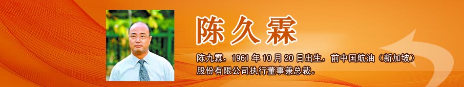 | 人物背景 | 陳九霖,1961年10月20日出生,前中國航油(新加坡)股份有限公司執(zhí)行董事兼總裁。在他執(zhí)掌期間,中國航油凈資產(chǎn)由17.6萬美元增至1.5億美元,增幅852倍,市值超過11億美元,是原始投資的5022倍,締造了一個商業(yè)傳奇,因此被稱為“航油大王”。2004年,中國航油因澳大利亞籍交易員紀瑞德和英國籍交易員卡爾瑪從事油品期權(quán)交易導致巨額虧損。陳久霖本人因此被迫離職,并遭到新加坡警方拘捕。2006年3月,新加坡初等法院做出判決,判處陳久霖入獄服刑四年零三個月,其判刑原因是股東售股拯救公司和公司沒有向交易所呈報虧損。陳久霖在新加坡服刑1035天后,于2009年1月20日刑滿出獄。