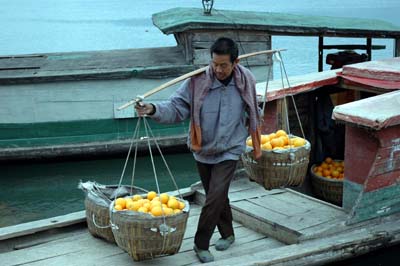 16日上午,重慶奉節(jié)縣白帝城鎮(zhèn)一位農民正在運送剛剛收獲的臍橙。今年夏季,重慶遭受百年一遇旱災,“臍橙之鄉(xiāng)”奉節(jié)縣利用三峽水庫,及時取水灌溉臍橙樹,保證臍橙不減產。眼下正是臍橙收獲季節(jié),奉節(jié)縣農民們反映,今年臍橙收成和去年差不多,依然是個豐收年。