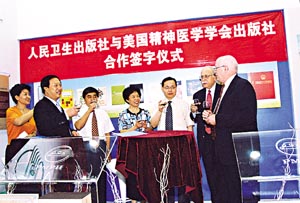 ——與美國(guó)骨科學(xué)會(huì)、精神病學(xué)會(huì)出版社、兒科學(xué)會(huì)正式簽約合作出版圖書(shū),雙方共同策劃圖書(shū)選題、共同組織國(guó)內(nèi)外專(zhuān)家編寫(xiě)、共同編輯加工,以雙方的名義同時(shí)出版中、英文兩種版本,中文版在國(guó)內(nèi)銷(xiāo)售,英文版在國(guó)際銷(xiāo)售。雙方利益共享,風(fēng)險(xiǎn)共擔(dān)。三個(gè)簽約儀式分別在2007年8月30日至9月3日舉辦的第14屆北京國(guó)際圖書(shū)博覽會(huì)期間隆重舉行。