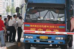 常州海關(guān)在出口加工區(qū)現(xiàn)場(chǎng)對(duì)運(yùn)往四川的救災(zāi)物資采取先放行后補(bǔ)辦手續(xù)的快速通關(guān)措施,確保了貨物及時(shí)到達(dá)災(zāi)區(qū)。 雅柯斯發(fā)電機(jī)(常州)有限公司向四川災(zāi)區(qū)捐贈(zèng)八臺(tái)柴油發(fā)電機(jī)組,從企業(yè)向常州海關(guān)交單登記到海關(guān)對(duì)貨物實(shí)施查驗(yàn)放行手續(xù)結(jié)束,整個(gè)過(guò)程只用了不到20分鐘。 |