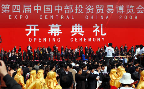 4月26日,在安徽合肥國際會展中心開幕。此次為期3天的博覽會以“創(chuàng)新、合作、共贏、崛起”為主題,將舉辦萬商西進(jìn)高峰論壇、中部六省與跨國公司午餐會、服務(wù)外包政策研討會、搞活流通擴(kuò)大消費政策說明會等活動。新華社發(fā)
