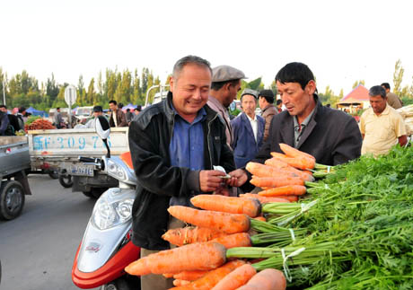 7月21日,商販在集市上采購蔬菜。 連日來,伊犁河谷最大的農副產(chǎn)品中心批發(fā)市場伊犁農副產(chǎn)品中心車水馬龍,每天各類瓜果蔬菜的銷售量在130萬公斤左右,交易量比“7·5”前略有減少,但是影響不大,價格也相對穩(wěn)定。該市場占地200多畝,集交易、展示、倉儲、辦公為一體,輻射帶動伊犁州直縣市、口岸及周邊地市農副產(chǎn)品的批發(fā)交易。