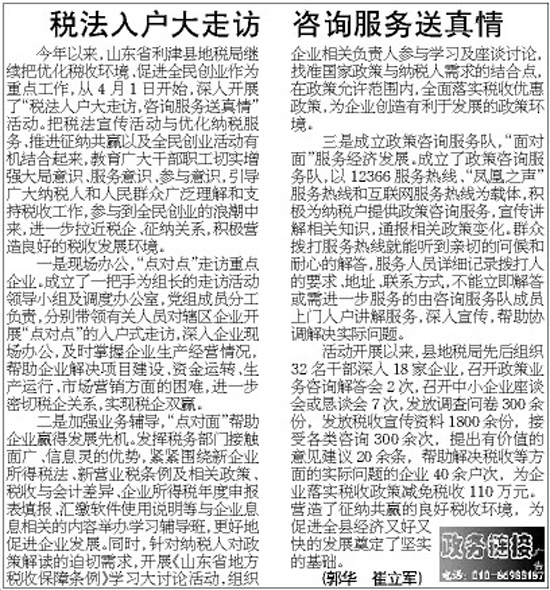 稅法大戶大走訪 咨詢服務(wù)送真情
