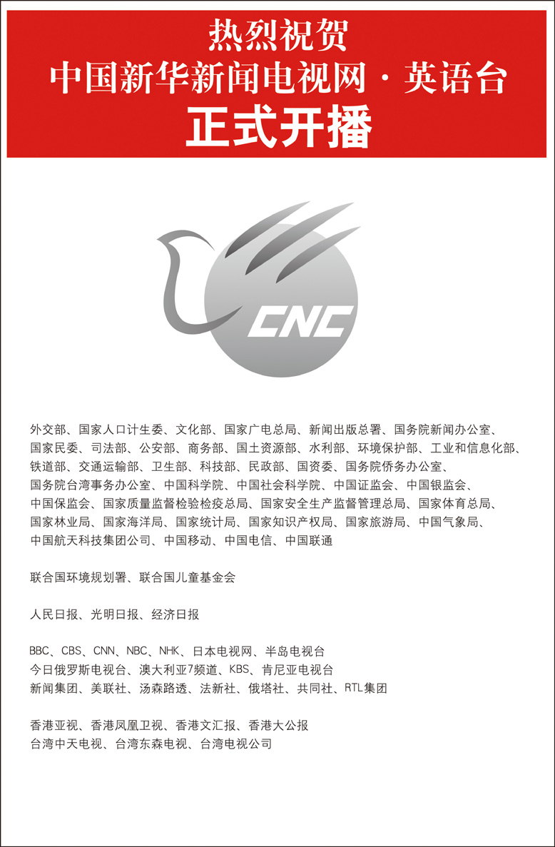 中國新華新聞電視網(wǎng)英語臺(tái)正式開播