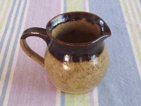 在一片壇壇罐罐中我發(fā)現(xiàn)了一個小奶罐,這是個淺褐色帶有米粒點的小奶罐,造型拙樸,矮矮胖胖的,好像單手叉腰的牧場老奶奶。奶罐的邊緣部分上了很濃的深褐色的釉,看起來很有裝飾效果。我買了下來,一新西蘭元,F(xiàn)在,只要有客人來,我都會用這小奶罐來招待咖啡和紅茶,很有鄉(xiāng)村的味道?晌疫是很喜歡我前面看到的那張桌子。但我下次再去的時候,已經(jīng)沒有了?梢,和我的審美習慣一樣的人還真不少呢。