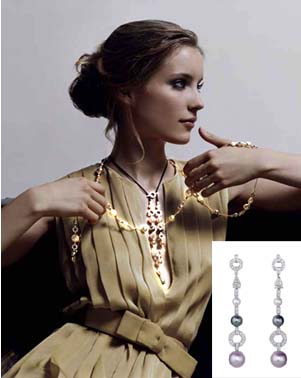 Himalia珍珠系列備有象牙白、珊瑚紅、淺綠色、灰黑色、巧克力色、淺紫色和鋼灰色珍珠項鏈、吊墜和耳墜等配飾。