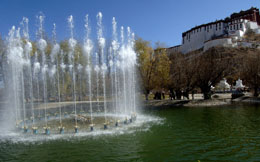 圖為拉薩宗角祿康公園內(nèi)的音樂噴泉。 |