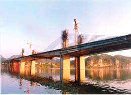 橫跨柳江的三門江大橋全長(zhǎng)4.3公里,總投資3.4億元,為雙塔雙索面斜拉橋。承建該橋的中鐵四局集團(tuán)開展了多項(xiàng)科技攻關(guān),確保工程安全質(zhì)量。大橋預(yù)計(jì)年底通車,將有力促進(jìn)西南地區(qū)的經(jīng)濟(jì)發(fā)展。