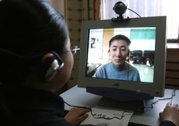 近日,內(nèi)蒙古自治區(qū)第一家網(wǎng)絡(luò)視頻面試系統(tǒng)在內(nèi)蒙古大學(xué)開(kāi)通,該校畢業(yè)生通過(guò)就業(yè)指導(dǎo)中心的視頻網(wǎng)絡(luò)就可與用人單位在網(wǎng)上完成初步面試,增加畢業(yè)生選擇工作崗位的機(jī)會(huì),也為招聘單位提供了方便。圖為內(nèi)蒙古大學(xué)法學(xué)院畢業(yè)生侯佳(左)通過(guò)網(wǎng)絡(luò)和一家外地公司洽談。