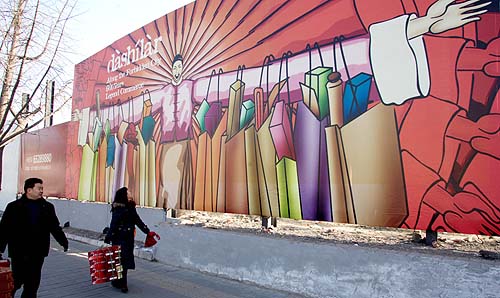 一批富有老北京韻味的商業(yè)風(fēng)情畫(huà)日前出現(xiàn)在北京前門(mén)大柵欄商業(yè)區(qū)改造工地的圍擋上,吸引了過(guò)往行人的眼球。