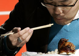 1月10日,一名男子在日本東京的餐廳里拿筷子用餐。日本西部的一個中學計劃要將筷子的使用技巧納入其入學考試項目,考試時學生要用筷子將一個盤子里的珠子、彈球、骰子和豆子在10分鐘內(nèi)轉移到另一個盤子里。