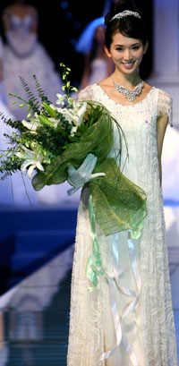 近日,在2007中國國際婚博會上,名模林志玲在某婚紗品牌發(fā)布會上亮相。盡管婚博會上的國際王牌婚紗令人驚艷,但更多的待婚族期待的是一場與眾不同的婚禮。本報記者:李明放