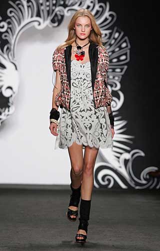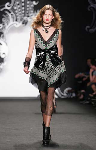 表面上仿如鄰家女孩的乖巧風格,其實充斥著顛覆傳統(tǒng)的設計元素,這就是安娜蘇的春夏系列服飾。 盡管設計師本人在這一季更為偏愛黑色、白色與紅色,但那些時尚元素頗強的深藍色、翠綠色、藍紫色、杜松色、藍莓色、水藍色、淡紫色、白金色和金色也并未被完全遺忘。 材質(zhì)的選擇上,安娜蘇依舊出手不凡,布料混合著纖密的蕾絲、人造亮漆布、金屬編織粗尼、荷葉邊裝飾的細薄棉布、亞麻刺繡底布和毛織衣料……一應俱全。 至于輪廓,這一季安娜蘇在極力體現(xiàn)著輕短而豐滿的身型效果,摒棄了僵硬的架構(gòu),展現(xiàn)著洛可可時期的剪裁與制作。身型方面,有娃娃型洋裝、雞尾酒小禮服、無袖涼衫、家居洋裝、無袖連衣裙、緊身連衣女裝和蘇格蘭式短裙。 與以往相同,安娜蘇的作品具有極強的迷惑力,無論服裝、配件還是彩妝,都能讓人感覺到一種搶眼的、近乎妖艷的色彩震撼。她最擅長從紛亂的藝術(shù)形態(tài)中尋找靈感。在崇尚簡約主義的今天,安娜蘇逆潮流而上,設計中充滿濃濃的復古色彩和絢麗奢華的氣息。事實上,安娜蘇服裝盡管華麗但從不失實用性,它可以讓時尚的都市女性發(fā)揮自己的無限創(chuàng)意,隨心組合,以展現(xiàn)獨特的個性魅力。