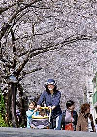 春雨洗凈鉛華,又逢賞櫻時節(jié)。在東京著名的賞櫻勝地新宿御苑,櫻樹繁花似錦,樹下游人如織。春風(fēng)伴著花香,吹進賞花人的心里。 在御苑一株櫻樹下,平澤和幾名好友席地而坐,面前擺放著意大利通心粉、飯團和面包等食品。她們盡情聊天,享受著午后悠閑的時光。微風(fēng)吹過,花瓣飄落,草坪籠上一層粉紅的氤氳。 在日本,4月1日是新年度的開始,也是新生入學(xué)和公司新員工正式上班的日子。在這一天外出賞櫻,自然也成為同學(xué)或同事聯(lián)誼的良機。 御苑問訊處的工作人員本莊說:“平時,這里游客每天最多也就兩三萬人,而在賞櫻時節(jié),特別是天氣晴朗的周末,每天游客可達(dá)10萬人左右!痹诮衲甑馁p櫻季節(jié),新宿御苑在原來三個售票點的基礎(chǔ)上又增設(shè)了兩個臨時售票點,但每個售票點窗口前還是排起了上百米的“長龍”。 不光是御苑,日本幾乎每個稍有名氣的賞櫻場所,每年3月到4月的賞櫻時節(jié)都門庭若市。人們或呼朋喚友或全家出動,在櫻樹下鋪上塑料布,聊天、唱歌、玩游戲,或者什么都不做,只是靜靜地躺著,閑看淡粉色的櫻花映襯在碧空下。 這時節(jié),種有櫻樹的人家一般都會邀請親朋好友到家里賞花,種有櫻樹的學(xué)校和企業(yè)也會向公眾開放。年輕學(xué)生和上班族一般會在忙完功課或工作后,相聚在一起觀賞夜櫻。東京上野公園、愛宕神社和京都円山公園等夜晚都會點燈。與白天相比,朦朧燈光下的夜櫻別有一番風(fēng)情。 這時節(jié),連整個日本社會仿佛都在圍繞著賞櫻運轉(zhuǎn):氣象廳每隔幾天就要發(fā)布一次各地的花期預(yù)報;一些網(wǎng)站每天更新各地賞櫻場所的開花情況;不少商店在醒目位置擺放“賞櫻便當(dāng)”、“賞櫻團子”、清酒和水壺等賞花用的食品和器具;警方則加派人手疏導(dǎo)賞櫻場所的交通。 賞櫻已成為日本的春季盛事。在日語中,“賞花”一詞如果沒有添加限定詞,指的就是觀賞櫻花。由于各地櫻花開放的日期不同,不少日本人甚至從南往北隨著花期的推移趕到各地賞櫻。 |