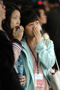 4月7日,臺(tái)灣畢業(yè)生唐庭怡(右)、楊秀麗(左)在廈門就業(yè)洽談會(huì)上找工作。當(dāng)天,第二屆“臺(tái)灣地區(qū)專業(yè)人才暨大學(xué)畢業(yè)生大陸就業(yè)洽談會(huì)”在廈門舉行,50多家招聘單位為近200名來自寶島臺(tái)灣的專業(yè)技術(shù)人才、畢業(yè)生及在大陸各地就學(xué)的臺(tái)籍學(xué)生提供了400多個(gè)職位。 |