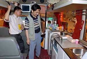 第一次看到房車的人多少會有一種不真實的感覺。舒適的臥室、清潔的衛(wèi)生間、精致的客廳、整潔的廚房竟然能夠如此巧妙地融合在一個并不寬敞的空間里。 記者在北京中天行房車俱樂部看到,一輛小型房車只比普通面包車大一點,里面僅12平方米的面積卻“擠”下了廚房、衛(wèi)生間、客廳和臥室,且電視、空調(diào)、DVD、沙發(fā)、燃?xì)庠、冰箱、微波爐等常用生活設(shè)備應(yīng)有盡有。只不過,每一樣設(shè)備都非常袖珍。記者注意到,為了節(jié)約面積,廚房水池是兩用的,蓋上一塊板子即可作為操作臺、切菜板,掀開就成了洗菜池。 與現(xiàn)實生活中的家不同的是,房車內(nèi)窗戶很多,這極大地滿足了愛好旅游的人對欣賞風(fēng)景的需求。“車內(nèi)是溫馨的家,車外是無限的風(fēng)景,這種感覺很獨特!28歲的單身漢小周堪稱房車愛好者,與成為房奴一族的周邊朋友相比,小周在享有物質(zhì)生活滿足感的同時,還享受著生活的樂趣與輕松。畢業(yè)三年后,小周就買了一輛房車,現(xiàn)在已駕車游了大半個中國。“我的朋友都認(rèn)為我瘋了,但是他們還是挺羨慕我生活的狀態(tài)!毙≈艿靡獾卣f。