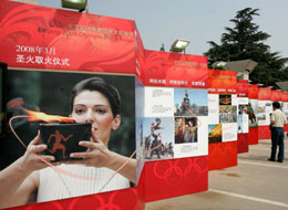 北京奧運會火炬接力主題展覽日前在北京正式開展。由北京奧組委火炬接力中心主辦的這次展覽以圖片和實物模型等形式,向觀眾介紹有關往屆奧運火炬創(chuàng)意設計以及傳遞路線等知識。據(jù)悉,本次展覽將一直持續(xù)到7月13日,今后還將在全國其它省區(qū)市和部分境外火炬接力城市陸續(xù)展出。