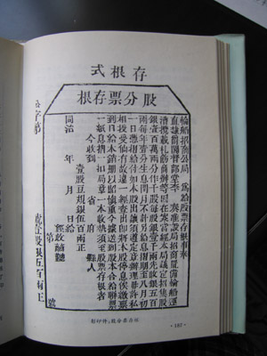 事情確實(shí)也如此,從有人提出引進(jìn)輪船和開辦西方式的新型企業(yè)到招商局成立,晚清朝野之間經(jīng)歷了十多年時(shí)間的徘徊、爭(zhēng)議、反對(duì),障礙重重。如果不是李鴻章抱定此事是“毅然必行之事,破群議而為之”去進(jìn)行推動(dòng)的話,招商局還不可能在1872年成立!罢猩叹钟衫铠櫿伦嘣O(shè),局務(wù)應(yīng)由李鴻章主政”,出自總理衙門的這句話,除了進(jìn)一步確認(rèn)了招商局與李鴻章之間的關(guān)系外,也明確了企業(yè)的責(zé)任歸屬。這一點(diǎn),對(duì)于當(dāng)時(shí)社會(huì)裂變期中國(guó)新型企業(yè)的生存環(huán)境和條件,同樣起到了畫龍點(diǎn)睛的作用。 其次是股票中對(duì)企業(yè)本身情況的說明,即對(duì)該局的總股本,每股的金額和分配方面的規(guī)定以及需注意事項(xiàng)的說明中,也有幾點(diǎn)很不尋常:一是每股的金額特別大,如按每股一千兩計(jì)算,總股本只有一千股,即使按先收一半即五百兩,每位股東再按平均購(gòu)買一股算,股東總數(shù)也只有2000人,何況不可能每位股東都只購(gòu)買一股,因此股東總?cè)藬?shù)低于2000人是可以肯定的。這個(gè)規(guī)定,與傳統(tǒng)中國(guó)社會(huì)中合伙企業(yè)的股東數(shù)量一般不多是一脈相承的。二是文字中明確有“每年壹分生息”的規(guī)定。這個(gè)“壹分生息”的規(guī)定在招商局的局規(guī)中被稱為“官利”,是每年不管企業(yè)經(jīng)營(yíng)情況如何都必須發(fā)放的固定股息,如果企業(yè)經(jīng)營(yíng)的好,利潤(rùn)率超過壹分,超過壹分發(fā)放的利息被稱為“紅利”或“余利”。這一點(diǎn),與西方企業(yè)中的優(yōu)先股的規(guī)定還不一樣,因?yàn)楫?dāng)時(shí)甚至沒有優(yōu)先股的概念。因此,這個(gè)規(guī)定絕對(duì)可以稱得上是有中國(guó)特色的東西。因?yàn)槲鞣揭话愎煞葜破髽I(yè)通行的規(guī)則,是股票收益應(yīng)視企業(yè)的效益如何而定,而不能事先規(guī)定固定的利息率。規(guī)定利率的現(xiàn)象,一般只存在于債券的發(fā)行中。招商局這時(shí)既無優(yōu)先股的規(guī)定,而“官利”的特點(diǎn)又與一般西方式股份制的規(guī)定有明顯區(qū)別。因此從這個(gè)意義上看,當(dāng)時(shí)的這份股票又帶有債券的性質(zhì)。有意思的是,由招商局“開其端”的規(guī)則中也包括這個(gè)“官利”的分配制度在內(nèi)。在招商局之后陸續(xù)成立的其它企業(yè)如開平礦務(wù)局、上海機(jī)器織布局、徐州利國(guó)礦務(wù)局以及20世紀(jì)后中國(guó)成立的其他各種類型的股份制企業(yè)中,這種規(guī)定都一直存在,并且一直存在到1956年資本主義企業(yè)全行業(yè)實(shí)行公私合營(yíng)改造時(shí)才被定息所取代。 三是在交款購(gòu)買股票時(shí),除拿到留下存根后的股票外,還同時(shí)發(fā)給領(lǐng)取“官利”的息折和局章各一本。也就是說,通過這些方式以及規(guī)定,在強(qiáng)調(diào)這份股票的合法性和權(quán)威性的同時(shí),還保證其在運(yùn)作中的可操作性。 總之,從這份股票中留下的這些規(guī)定以及嚴(yán)厲的語氣看,給人的印象是除了有關(guān)企業(yè)的規(guī)定外,似乎是企業(yè)股票的味道少而官方文告的味道多,但也正是在這些地方,透視和散發(fā)出歷史變化的氣息。