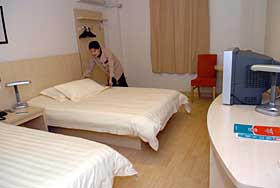 而杭州和居速8酒店總經(jīng)理周士苗說:“酒店興旺與否,并非價格為王,還要考慮到它的地理位置、服務(wù)態(tài)度、銷售網(wǎng)絡(luò)等!彼硎,速8品牌力推的“干凈、友好”服務(wù)和強大網(wǎng)絡(luò)連鎖帶來的顧客群,會為速8增加不少競爭底氣。 目前,國內(nèi)經(jīng)濟型酒店都是以低價來吸引客源,但是低價的同時卻不能保證品質(zhì),以致出現(xiàn)了低價格也低品質(zhì)、高品質(zhì)也高價格的兩極分化現(xiàn)象。那“我的客!蹦芊裉鲞@個怪圈呢?有著十多年星級酒店管理經(jīng)驗的向勇對此的回答是肯定的。 經(jīng)濟型酒店也被稱為是“非完全服務(wù)型酒店”,向勇說:“星級酒店提供了太多不必要的服務(wù),而經(jīng)濟型酒店刪繁就簡,‘我的客!⒃趯τ稳诵枨蟮纳钊肓私馍,99元的價格完全可以滿足普通旅行者的核心需要:一夜好覺! “我的客棧”的品牌特色是推行智能自助服務(wù)方式,即顧客自我服務(wù),它也是目前中國首家智能自助經(jīng)濟型酒店。“我的客!睘橄M者提供眾多的自助服務(wù)項目,如24小時洗衣、數(shù)字商務(wù)中心、火車票和機票自助預(yù)訂機、連鎖便利超市、自助餐等。自助服務(wù)是“我的客!惫(jié)省成本的法寶之一。 在“我的客!24小時營業(yè)的喜樂超市里,有各種飲料食品和生活用品出售,還配備了熱水機、咖啡機、微波爐等自助設(shè)備。來自溫州的周小姐正在用熱水機泡方便面,對于酒店的“智能自助”方式,周小姐覺得很適應(yīng):“衛(wèi)生也方便”。據(jù)向勇介紹,酒店對于自助服務(wù)設(shè)備的投入很大,而顧客大多是年輕人,平均年齡在25歲左右,很容易接受自助服務(wù)。 對智能自助經(jīng)濟型酒店的新鮮出爐,本土經(jīng)濟型酒店“如家”的CEO孫堅認為,有新業(yè)態(tài)出現(xiàn)是好事,表明酒店市場又進一步細分化。商務(wù)人士可能會更喜愛“如家”一類的傳統(tǒng)經(jīng)濟型酒店,部分年輕背包族會青睞“我的客棧”,所以“我的客!笨赡軙蔀榍嗄曷蒙岬闹苯痈偁帉κ。