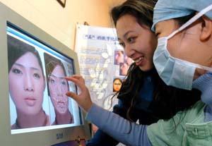 盛夏季節(jié),一幕幕整容“大戰(zhàn)”在城市中上演。各類整形美容機(jī)構(gòu)紛紛打出青春牌,“丑小鴨變成耀眼明星”的溫情廣告頻繁見諸媒體。與此同時,整容熱、考駕照熱和旅游熱,正在成為這個暑假學(xué)生中最為流行的“三熱”,其中整容熱更是居于首位。 “一邊是‘求美者’從肚臍穿孔到大變臉的迫切要求,一邊是沒日沒夜?fàn)幹瓘V告的電話,我都快看心理醫(yī)生了!”一位整容?漆t(yī)生如此形容近期風(fēng)行的整容熱潮。